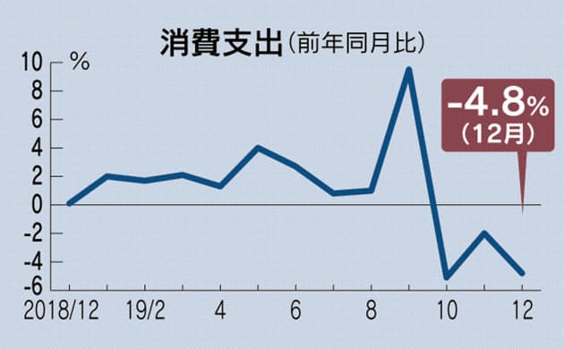実質消費支出、19年12月4.8%減 市場予想は1.7%減 - 日本経済新聞