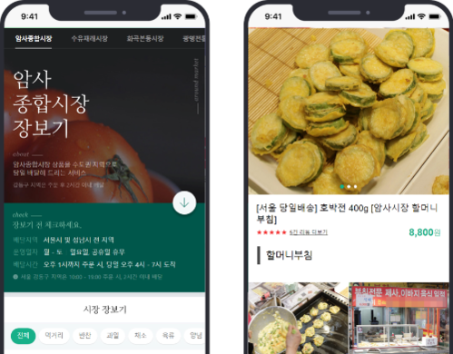 ‘동네시장 장보기’는 전통시장에서 파는 신선 식재료와 반찬, 꽈배기∙찹쌀떡 등먹거리를 온라인으로 주문해 2시간 내 배달하는 서비스다.