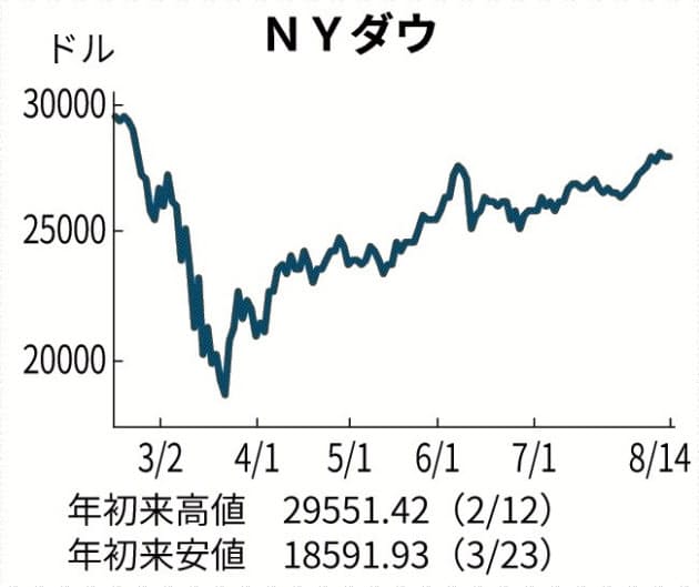 14日のダウ工業株30種平均は前日比34ドル高で終えた。追加経済対策の与野党交渉で進展が見られず、手掛かり難の中で相場の方向感は定まらなかった。…